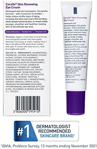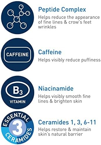 CeraVe Eye Cream for Wrinkles Under Eye Cream with Caffeine, Peptides, Free & Ophthalmologist Tested 0.5 Ounces, 0.5 Ounce (Pack of 1)