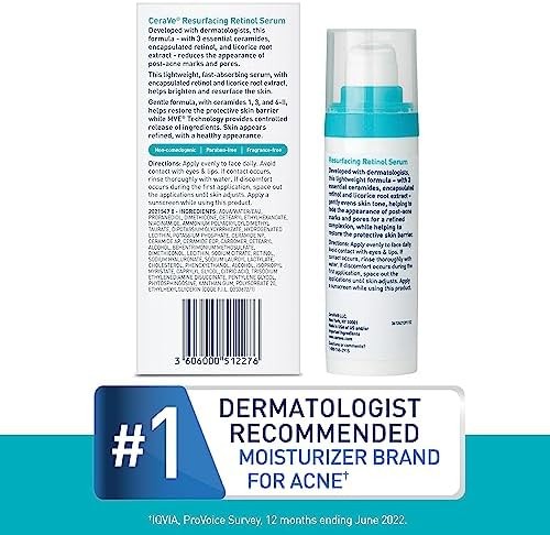 CeraVe Retinol Serum for Post-Acne Marks and Skin Texture | Pore Refining, Resurfacing, Brightening Facial Serum with Retinol and Niacinamide | Fragrance Free, Paraben Free & Non-Comedogenic| 1 Oz