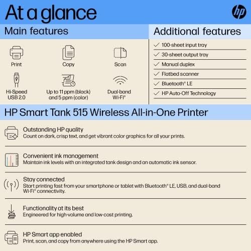 Experience the convenience and efficiency of the HP Smart Tank 515 Printer and elevate your printing experience to a whole new level. Don't miss out on this exceptional device that's designed to make your life easier.