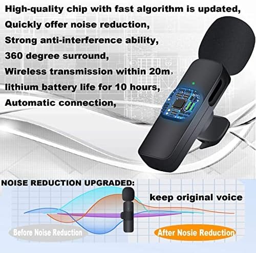 • 【Dual Wireless Microphones】This Wireless Microphones have two Lavalier Microphones with upgraded noise reduction,mini microphone for iphone can meet more scenes such as two-person live stream for TikTok,interview,meeting,video recording,team working on line.high-quality chip with fast algorithm make the original voice more clear by strong anti-interference ability,such an excellent tiny microphone set make you work outstanding in live show;
